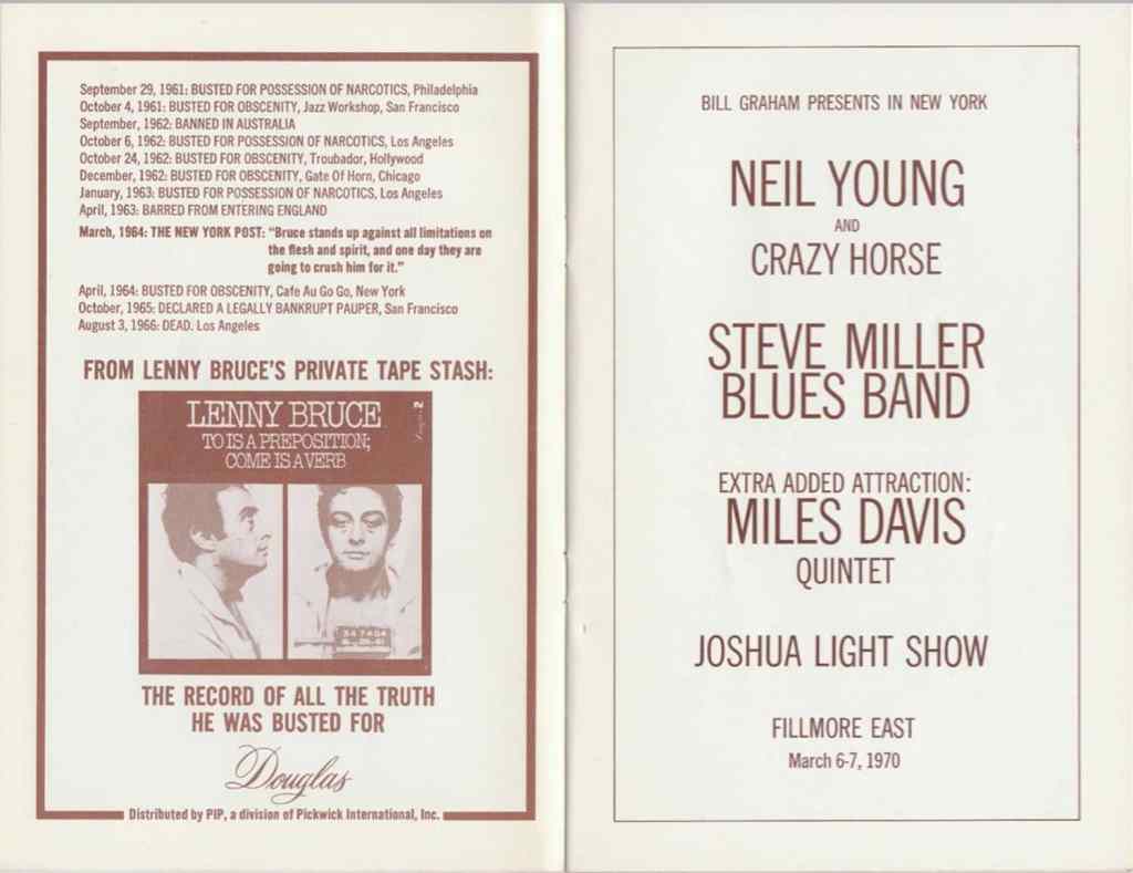 There’s a good chance you’ve already heard a document from this two-night stand, be it from Miles’ official 2001 live record It’s About That Time (featuring both complete sets from the 7th) or headliner Neil Young’s incredible Live at the Fillmore East released in 2006 (a compilation of tracks from the 6th and 7th). Both Fillmore locations also produced soundboards of most shows, making recordings of Miles’ sets fairly easy to track down.