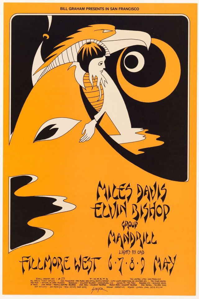 Miles played his final set of career-redefining Fillmore shows May 6-9, 1971 at Bill Graham’s Fillmore West. Anticipating the emergence of stadium and arena gigs that would define the 1970s, Graham closed his Fillmore East on June 27, followed by the Fillmore West on July 4, 1971. Though it’s presumed both Columbia and the Fillmore recorded the sextet’s four shows opening for the Elvin Bishop Group and Mandrill, only this May 7 soundboard recording is in circulation. Often overshadowed by the many recordings the band made at Fillmores East and West the previous year, this tape easily holds its own as the most ultra-modern of the bunch.