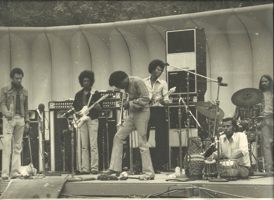 While Miles spent the spring and summer of 1972 recording his On the Corner LP and much of the material that would define the second phase of his electric period, documentation of his live activity from January through early September is cloudy at best. A brief fall tour yielded a relative abundance of riches, including a pair of radio broadcasts, a double live LP, and a couple of rough, but enjoyable audience tapes, one of which captures this performance at the Frost Amphitheater in Palo Alto. A tape rumored to have been recorded by Wally Heider Studios is yet to surface, making this audience tape the band’s final live document of 1972.